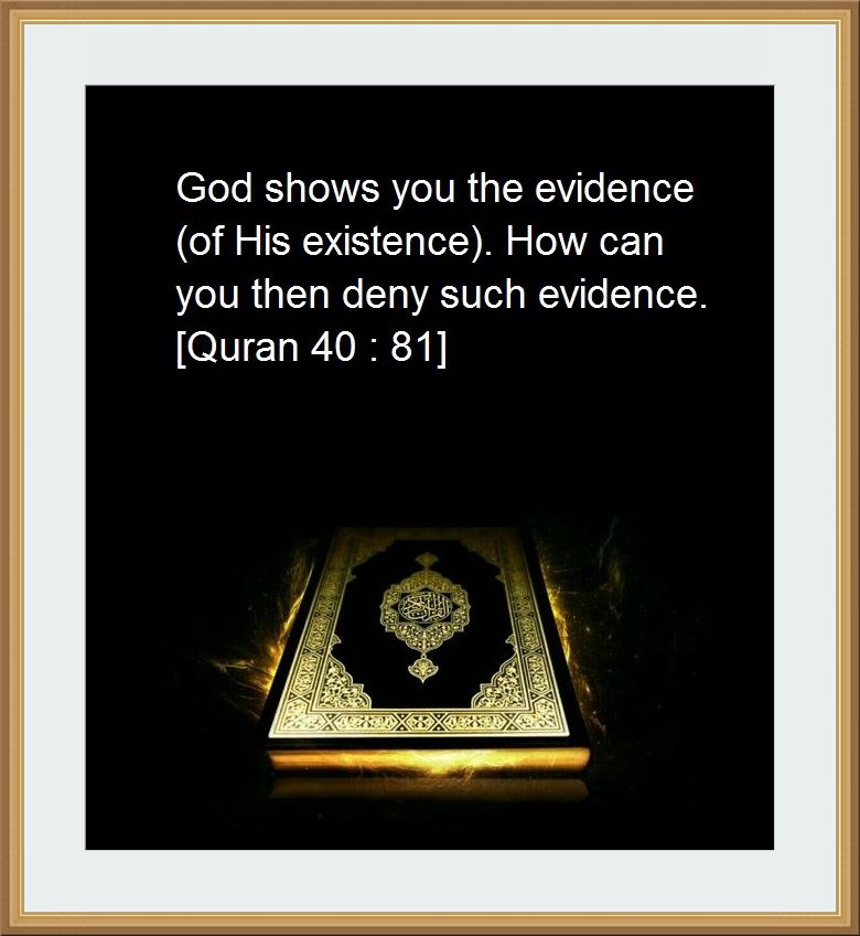 God shows you the evidence (of His existence). How can you then deny such evidence. [Quran 40:81]